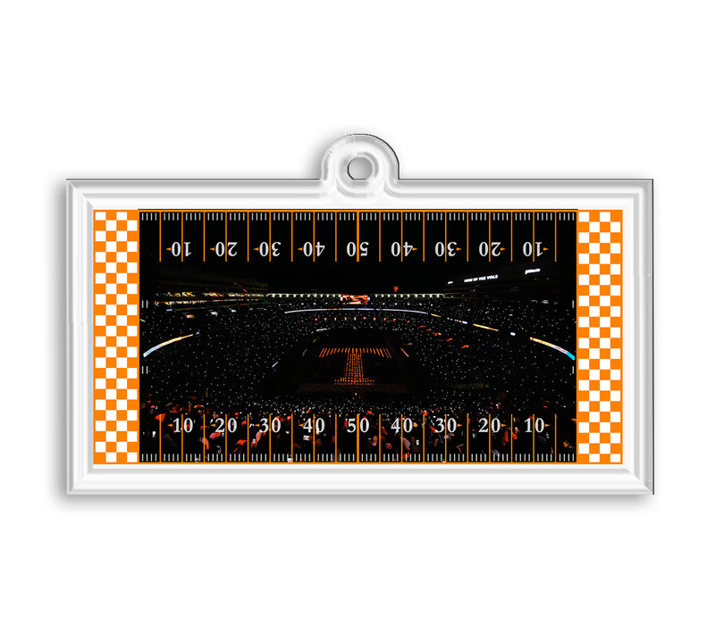 ORNAMENT/BAG TAG. College Wall Art acrylic Bag Tag & Ornaments are produced using cutting-edge UV technology, applying ink directly onto the back of 1/4” acrylic. The second surface application of white ink protects the image from fading and adds depth and vibrancy.